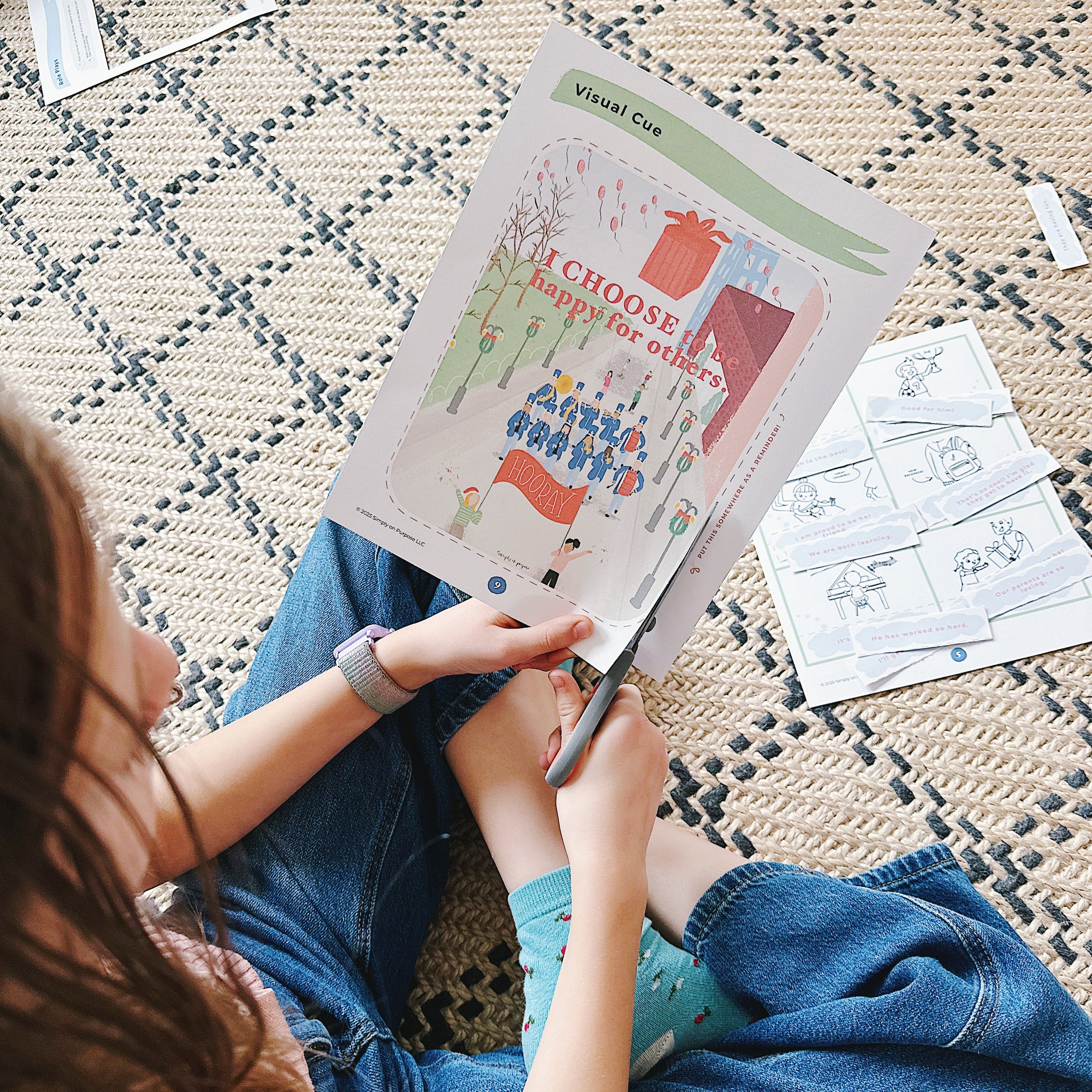 A Lesson (short and interactive) that teaches your child why it is important to cheer others on and how to retrain their brains to celebrate others.  It includes a game to choose happy thoughts to replace negative thoughts.